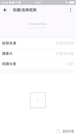 小程序演示中除了提供組件之外也展示了部分接口功能,從中抽取代表性的“選擇視頻”這一較為復(fù)雜用例進行測試:(接口類型:媒體--視頻)