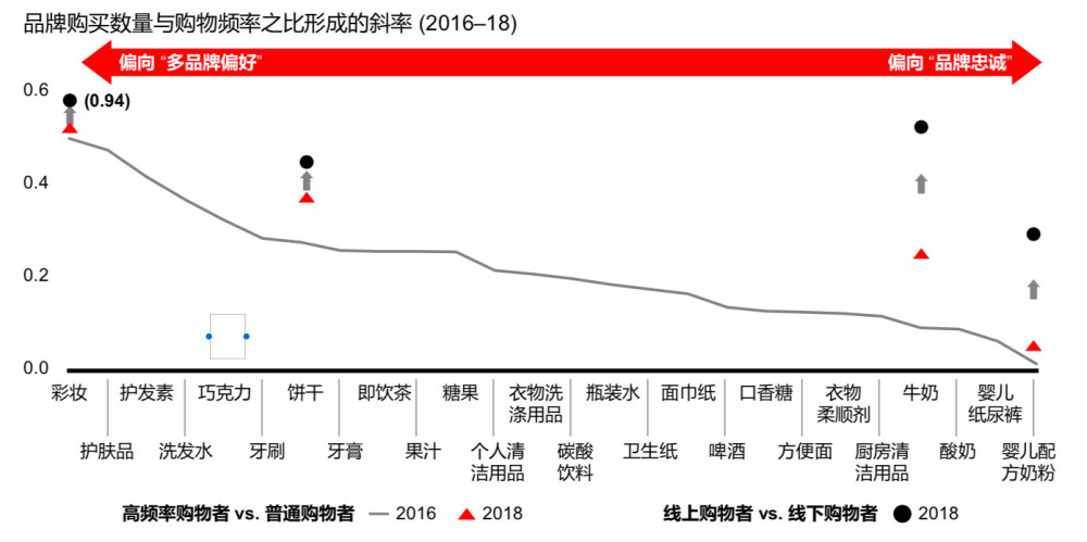 隨著消費(fèi)市場(chǎng)細(xì)分程度加劇,中國(guó)消費(fèi)者更喜歡“多品牌購(gòu)物”模式,網(wǎng)購(gòu)的普及讓他們的選擇范圍不斷擴(kuò)大。在調(diào)查中,彩妝、餅干、牛奶和嬰兒配方奶粉這些品類領(lǐng)域,消費(fèi)者對(duì)“多品牌”的熱衷程度近兩年明顯增強(qiáng),與此同時(shí),傳統(tǒng)品牌產(chǎn)品老化、創(chuàng)新不足的問(wèn)題日益嚴(yán)重,一旦它們令消費(fèi)者略感不滿,消費(fèi)者就會(huì)調(diào)頭尋找新的品牌替代。
