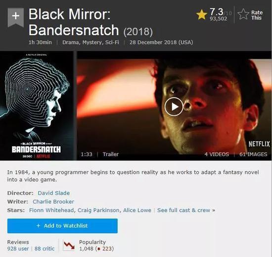 這恰是《黑鏡:潘達斯奈基》的正反面。它以純熟的技術(shù)打開了一扇窗,但游戲傾向除了激發(fā)探索欲望,也引起了用戶對內(nèi)容重心的質(zhì)疑。其在IMDb評分為7.3分,與《黑鏡》系列第一部的8.9分差距甚遠。有豆瓣用戶直言“劇情本身相當無聊,沒有腦洞全靠形式”。